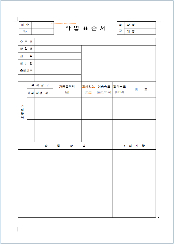 작업표준서는 작업에 관한 표준을 기록한 서류입니다.