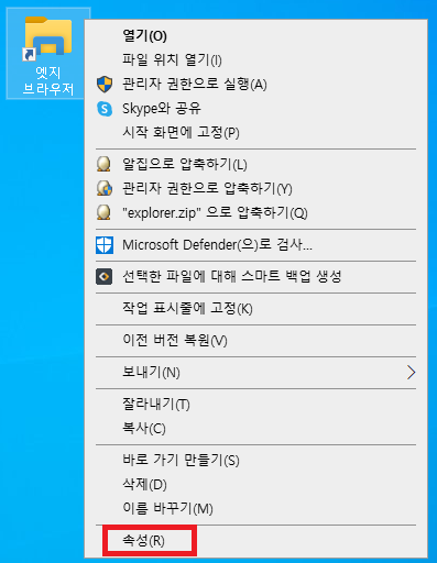 엣지 브라우저 아이콘이 바탕화면에 만들어졌으나 아래 사진과 같이