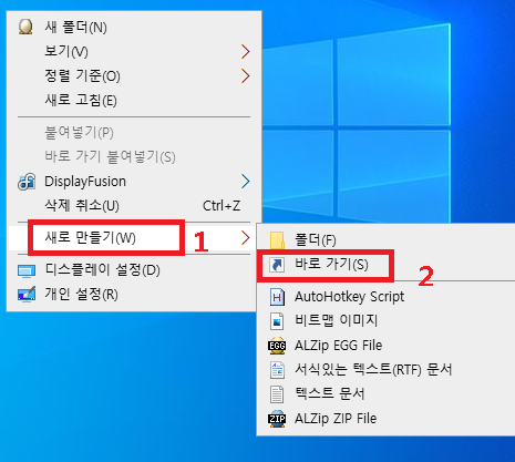 아래 사진과 같이 빈 바탕화면에 마우스를 오른쪽 클릭한후 새로만들기 ->