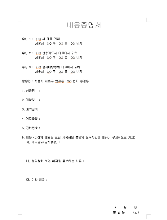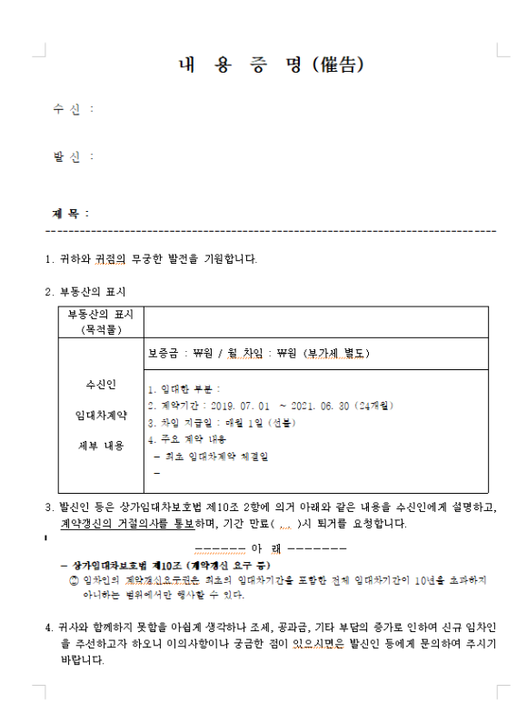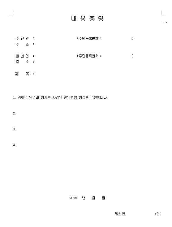 내용증명 한글양식 3