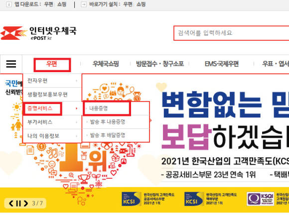 먼저 아래 사진과 같이 우체국 홈페이지에 들어간후 상단 오른쪽 메뉴에서