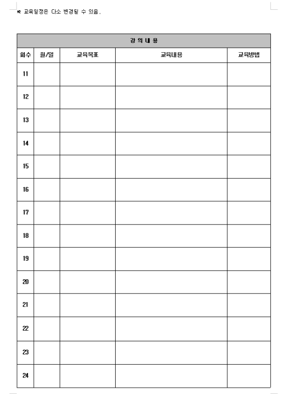 강의 계획서(수업계획서)는 강의에 대한 계획을 수립하여 기록하는 문서입니다.
