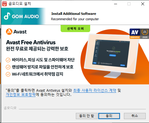 설치시 2개의 추가적인 프로그램설치를 묻는 화면이 나오는데 설치를 원하시지