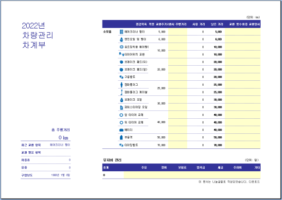 차계부 엑셀 양식입니다.
