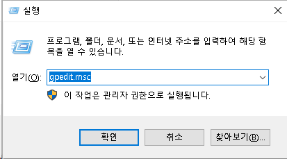 여기에 gpedit.msc 라고 입력후 엔터를 칩니다.