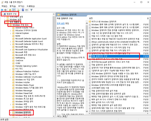 윈도우업데이트를 다시 하고 싶은 경우에는 이 항목을 "구성되지 않음" 또는