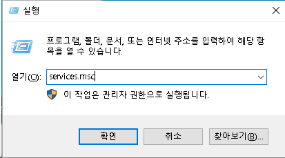 여기에 services.msc 라고 입력후 엔터를 칩니다.