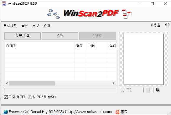 WinScan2PDF 프로그램은 스캐너가 있는 시스템에서 문서를 스캔하고 바로 PDF로