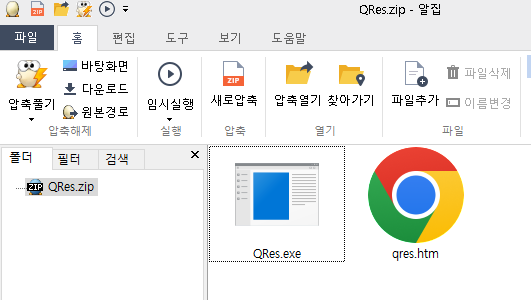 1개는 실행파일이며 qres.htm 파일은 설명서입니다.