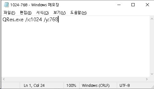 예를 들어 해상도를 1024 * 768로 변경하고 싶다면 아래와 같이 쓰면됩니다.