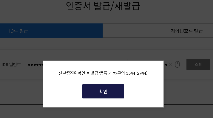키움증권 인증서가 만료되어 공동인증서를 재발급을 하려고 하는데