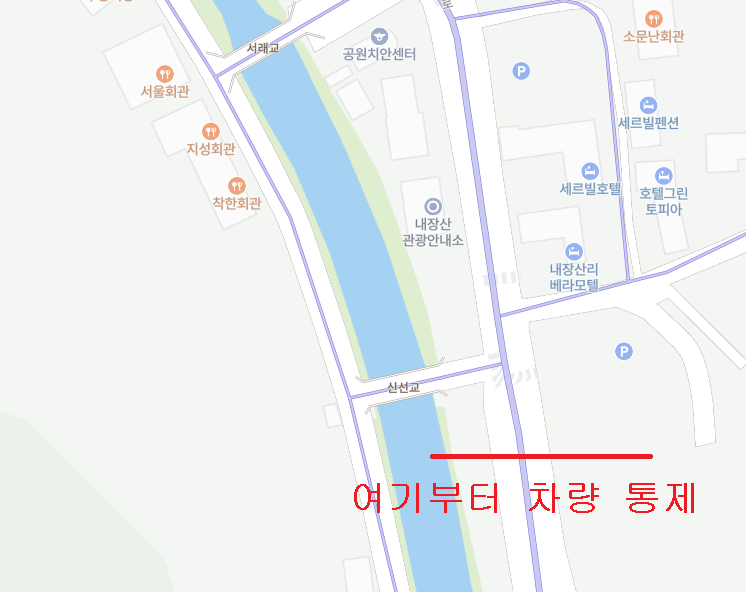 가을 단풍시즌에는 신선교(또는 내장산 관광안내소) 부근부터 차량 진입을 막습니다.