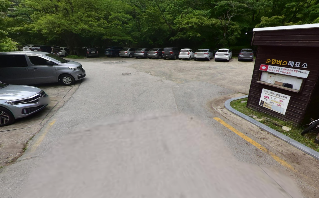 가을 단풍시즌을 제외한 비성수기에는 아래 사진과 같이 케이블카 매표소 바로 아래쪽 주차장에 주차가능합니다.