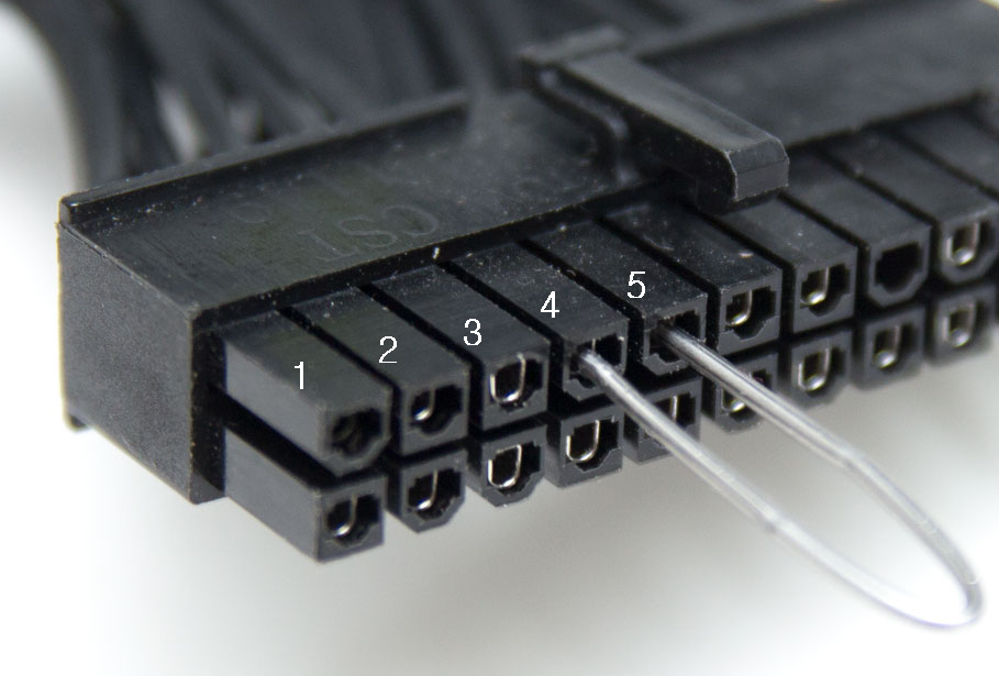 아래 사진과 같이 메인24핀커넥터의 4번(파워ON)과 5번(그라운드)을