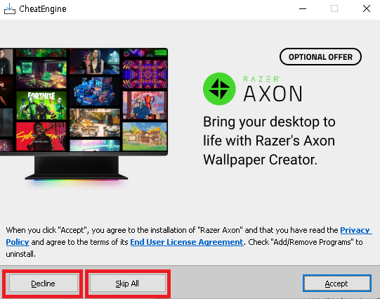 설치될 수 있으니 아래와 같이 Decline 또는 Skip All 을 클릭하시면 됩니다.