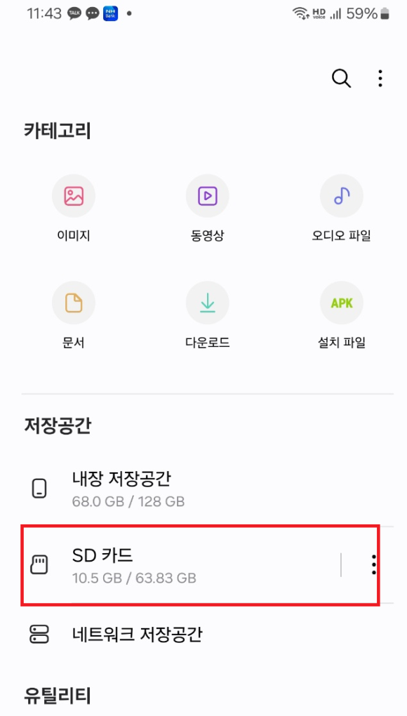 SD카드가 인식되지 않는다면 SD카드를 뺐다 다시삽입해보고