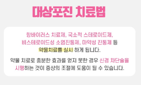 또한, 통증이 심한 경우에는 진통제를 사용하거나, 필요에 따라 스테로이드 치료를 고려할 수 있습니다. 치료가 늦어지면 합병증이 발생할 수 있으므로, 증상이 나타나면 즉시 병원을 방문하는 것이 좋습니다.