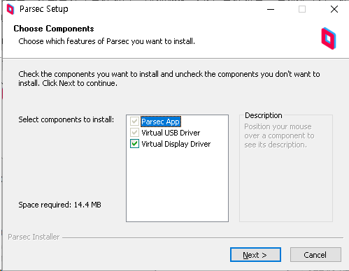 기본적으로 'Parsec App'과 'Virtual USB Driver' 는 체크되어 있으며,