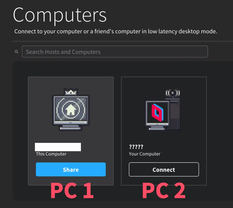 PC1 부분의 Share를 클릭하면 현재 컴퓨터를 공유할 수 있으며