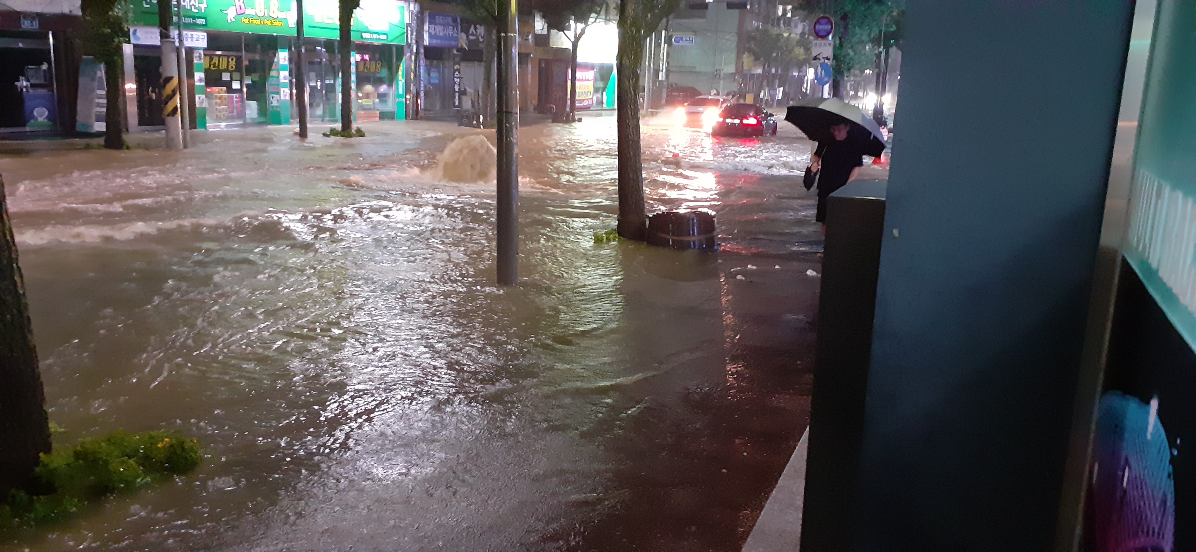 하수도 뚜껑 열리고 물이 역류하고 난리도 아님