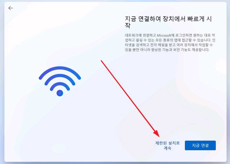 그다음 아래 사진과 같이 "제한된 설치로 계속"을 클릭합니다.