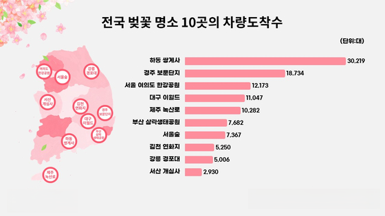 #벚꽃명소 #여의도 #석촌호수 #서울숲 #남산 #경의선숲길 #대구이월드 #경주대릉원 #청계천 #수원화성 #제주도