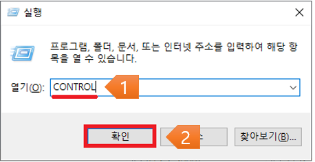 2. 실행창이 표시되면 [CONTROL]을 입력하고 [확인]을 선택합니다.
