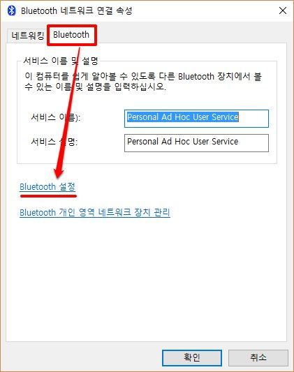 ※연결하려는 블루투스 장치에서 PC를 못 찾을 경우 : "Bluetooth 장치가 이 PC를 찾을수 있도록 허용(F)" 에 체크