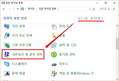 3. 제어판 오른쪽 상단에 보기 기준을 [큰 아이콘]으로 변경 하고,
