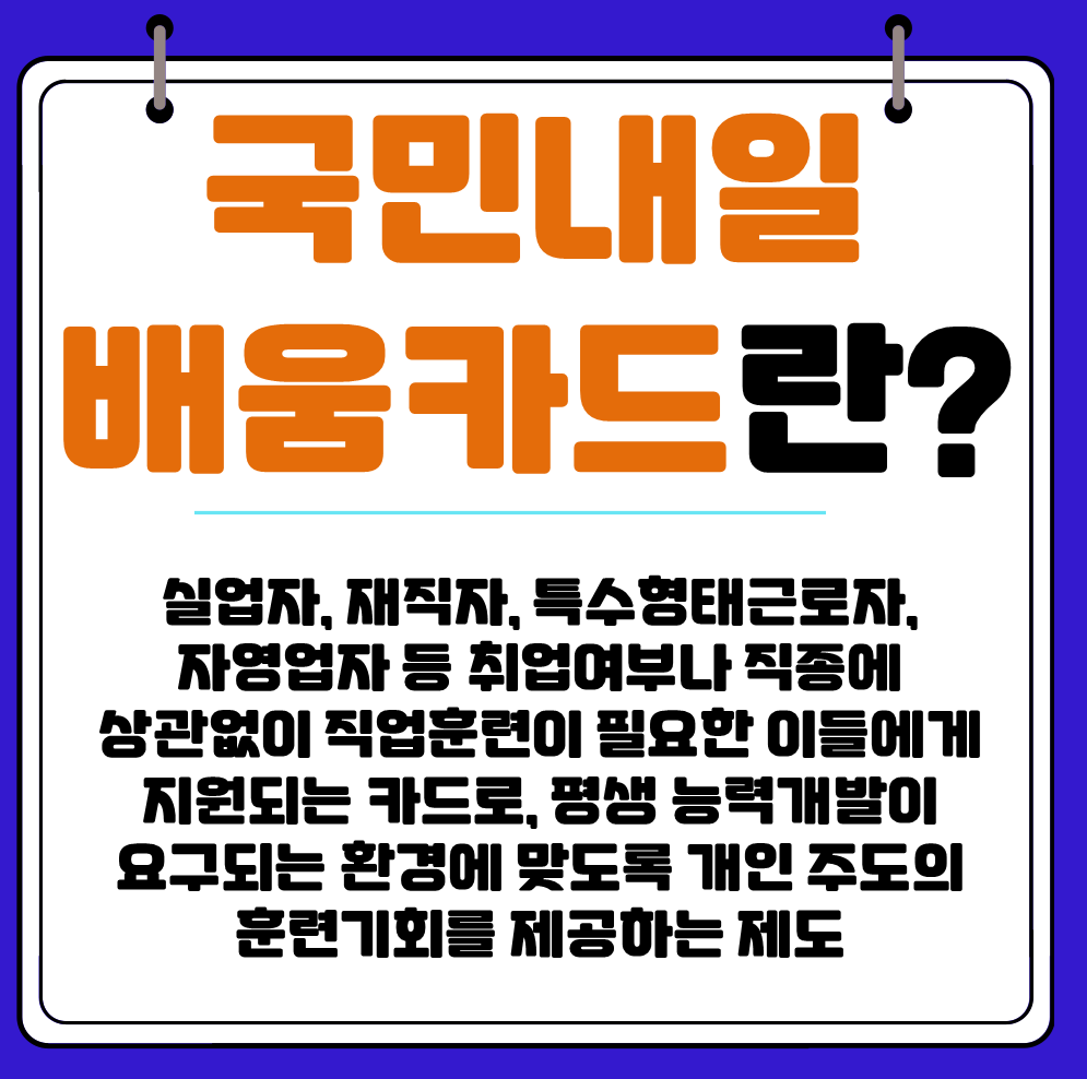 내일배움카드에 대해 알아보겠습니다. 이 카드는 직업 훈련과 자기계발을 위한 정부 지원 프로그램으로, 많은 분들이 활용하고 있습니다. 이번 포스팅에서는 내일배움카드의 개념, 장점, 사용처, 신청 방법 등을 자세히 설명드리겠습니다.