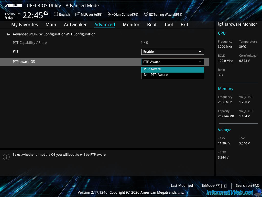 "Advanced AMD fTPM configuration" 메뉴를 선택합니다.