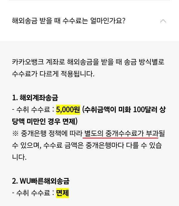 - 카카오뱅크의 국제 송금 수수료