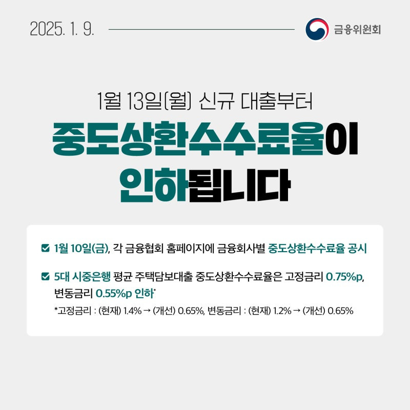 - 금융위원회의 중간환율 수수료 인하 발표