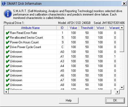SHOW SMART DISK INFO는 하드디스크의 자가진단 정보를 볼 수 있으며 디스크의 상태를 간락히 볼 수 있습니다
