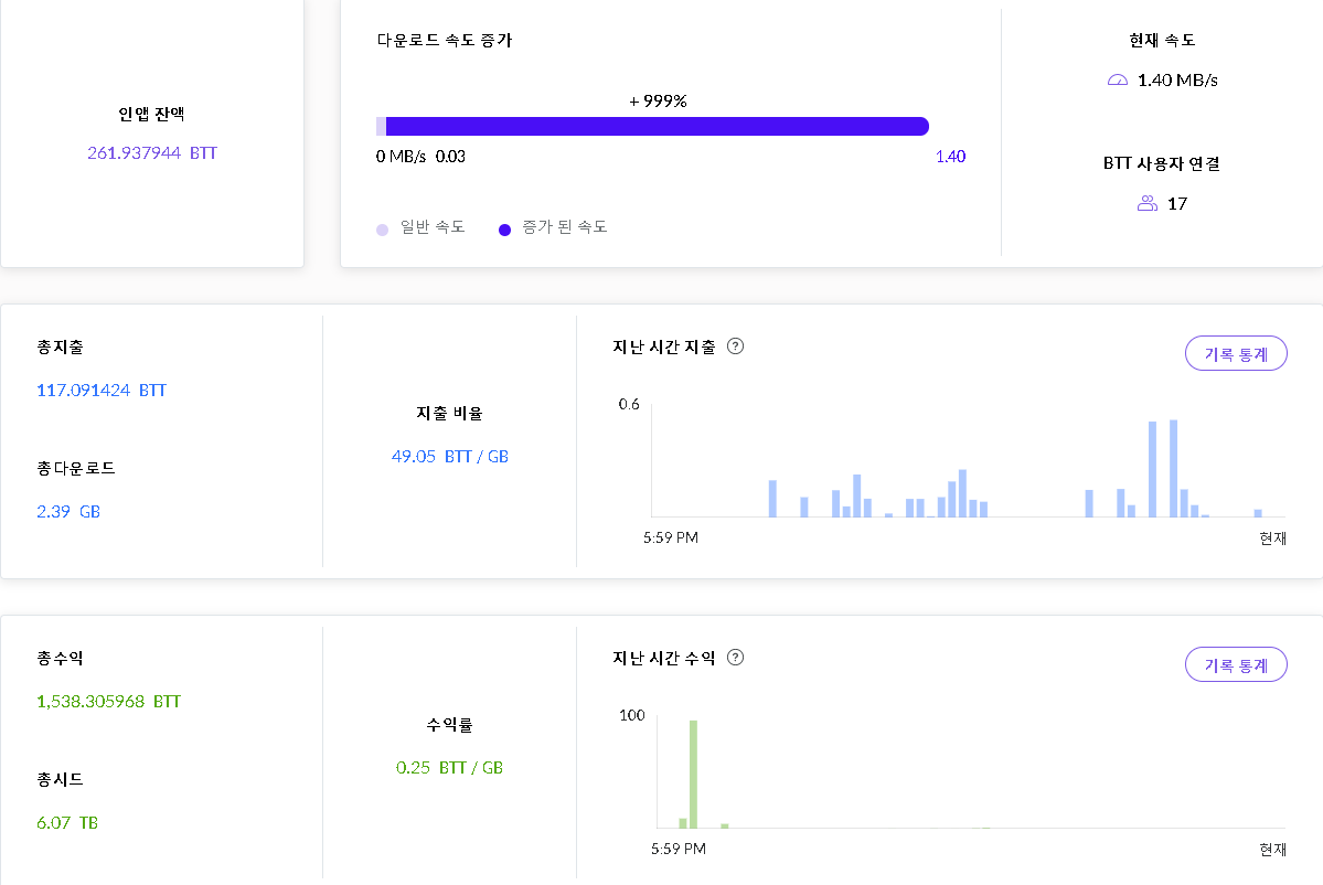 다른사람들이 자료를 다운받아가게 되고 자동으로 BTT 코인이 지갑에 적립됩니다