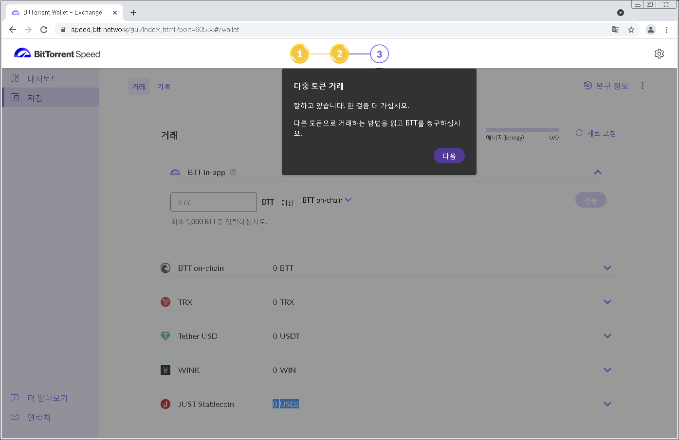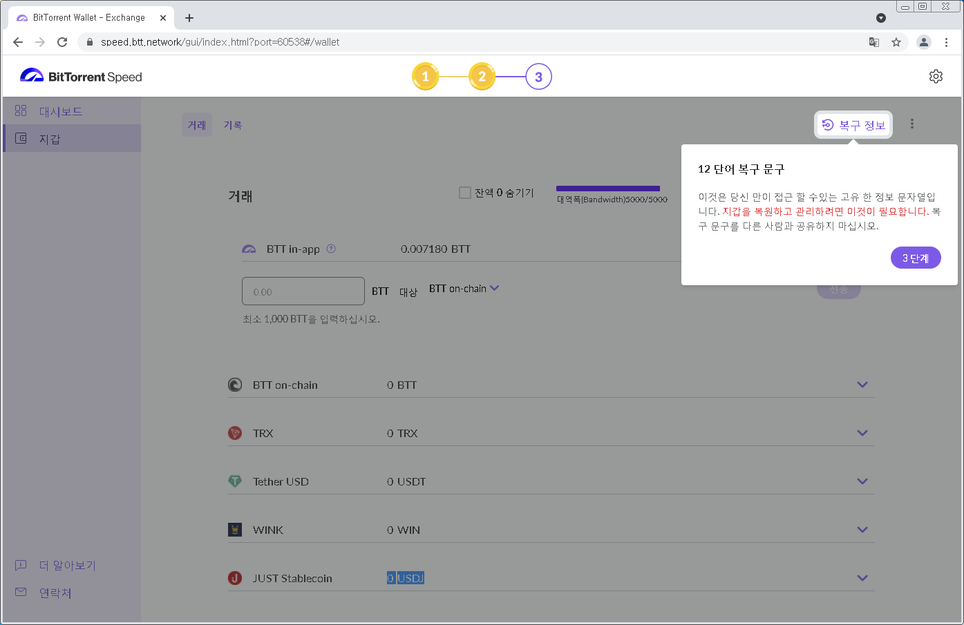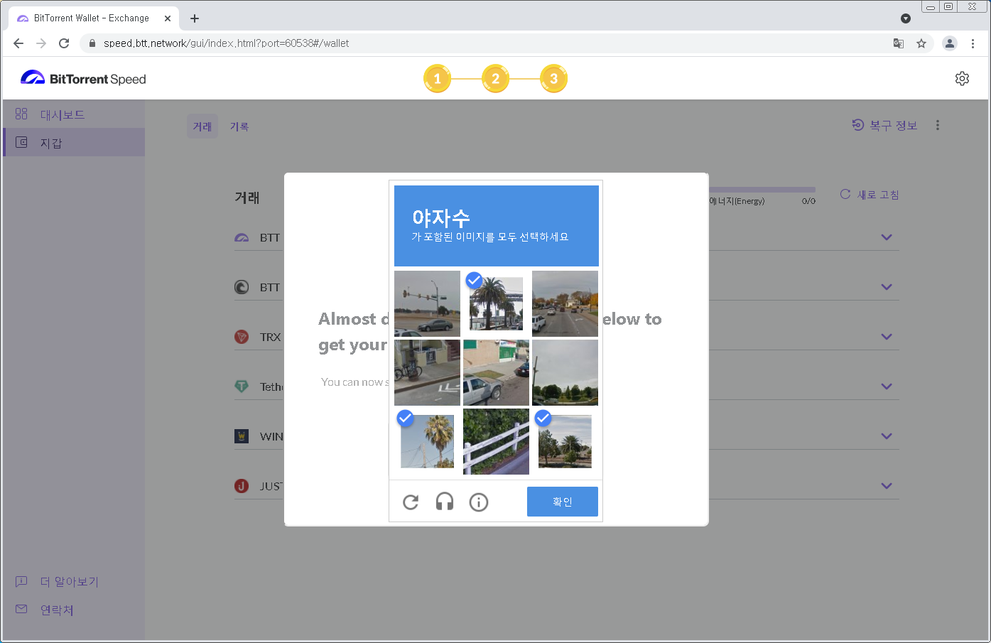 지갑설정이 완료됐고 3단계를 클릭합니다