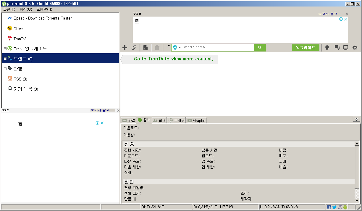 유토렌트를 설치하고 실행한 화면입니다