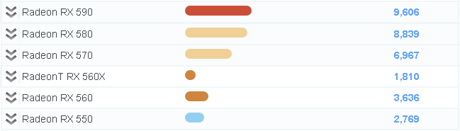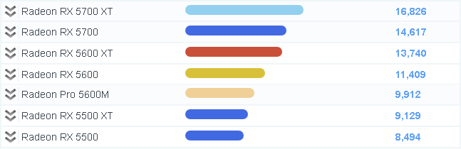 AMD 라데온 그래픽카드 벤치마크 비교표입니다