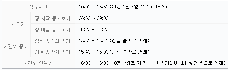 이 정규시간을 일반적인 동시호가 장 거래 시간이라고 합니다.