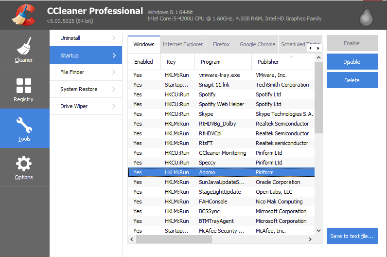 시스템안에 쌓여있는 쓸모없는 프로그램들을 말끔히 청소 해주는 CCleaner(Crap Cleaner) 설치버전 입니다.