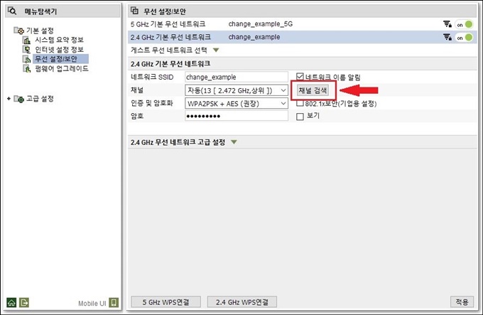 이럴 때는 수동으로 채널을 변경해 보면서 문제가 없는 채널을 찾아서 사용해 보시기 바랍니다.