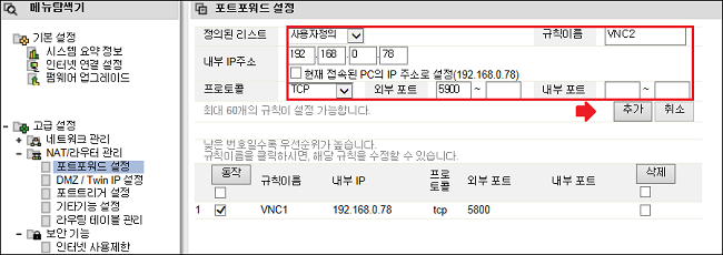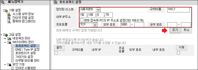 VNC 사용을 위한 ipTIME 공유기 설정법