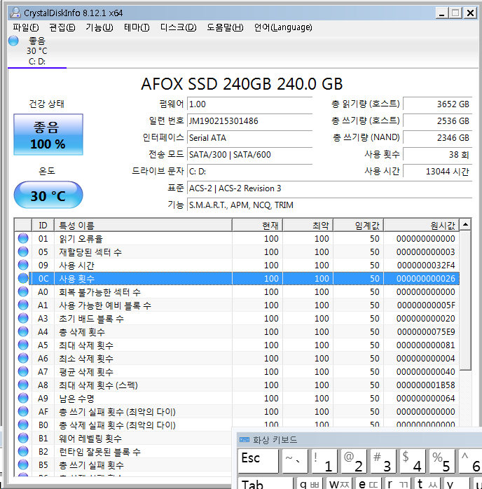 하드디스크 / SSD의 상태를 모니터링 할 수 있습니다.