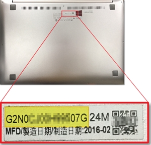 - 노트북 바닥 면의 스티커 라벨을 확인하여 주십시오. (10~12개의 문자)