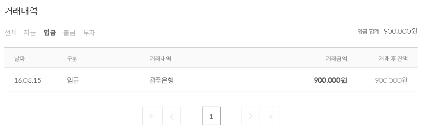 2016년 3월 15일 90만원을 입금하였습니다.