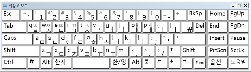 왼쪽 Alt+왼쪽 Shift+Num Lock : 마우스키를 설정하거나 해제