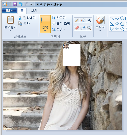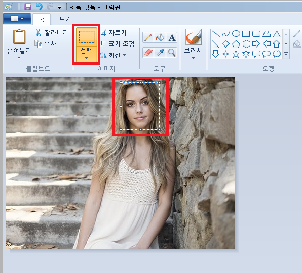 그리고 그림판의 선택 아이콘을 클릭한후 이미지의 모자이크할 부분을 선택해줍니다.