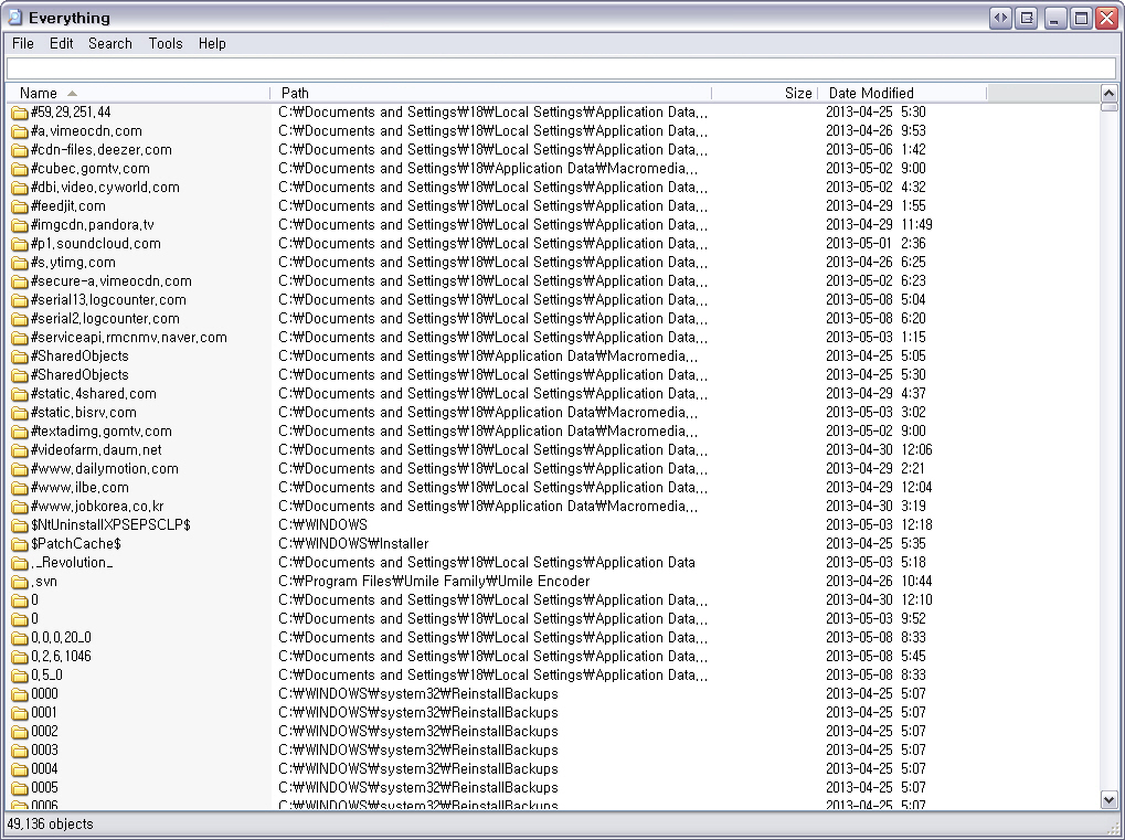 파일을 찾으면 그 해당파일의 위치경로도 파악하여 정보를 제공해주며, 레지스트리 또한 검색이 가능하기 때문에 다방면의 all-in-one으로 사용이 가능합니다.