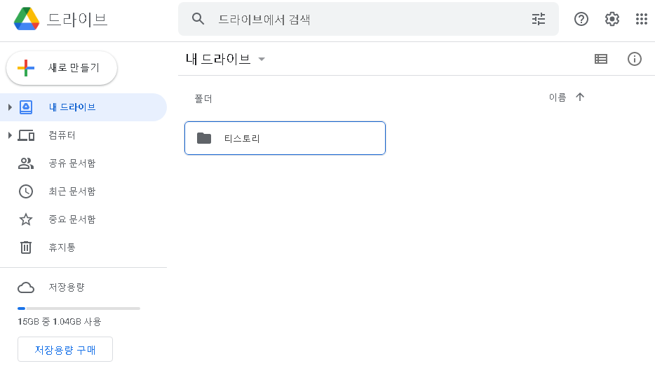 구글 드라이브에 접속하고 로그인하면 위 사진과 같이 나옵니다 .
