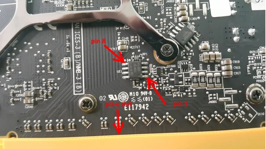 벽돌이 된 그래픽카드의 롬이 보입니다